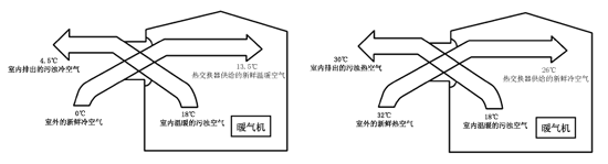 冬天:室內(nèi)供氣溫度=(室內(nèi)溫度-室外溫度) ×熱交換效率+室外溫度計算例:(18℃-0℃)×75%+0℃=13.5℃ |
